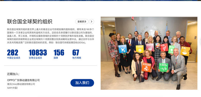 联合国全球契约组织,英文名 United Nations Global Compact,是目前世界上最大的、推进企业可持续发展的非盈利国际组织,拥有来自 160 多个国家的一万多家企业和其他利益相关方会员,其中中国企业 282 家。