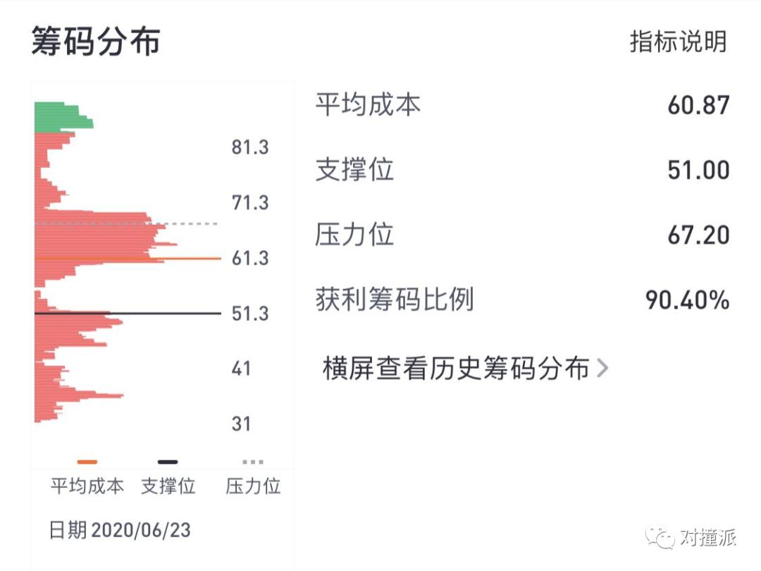 截止到2020年6月23日,拼多多流通股票的持仓成本平均为60.87美元,获利筹码比例为90.40%。(数据来自老虎证券)