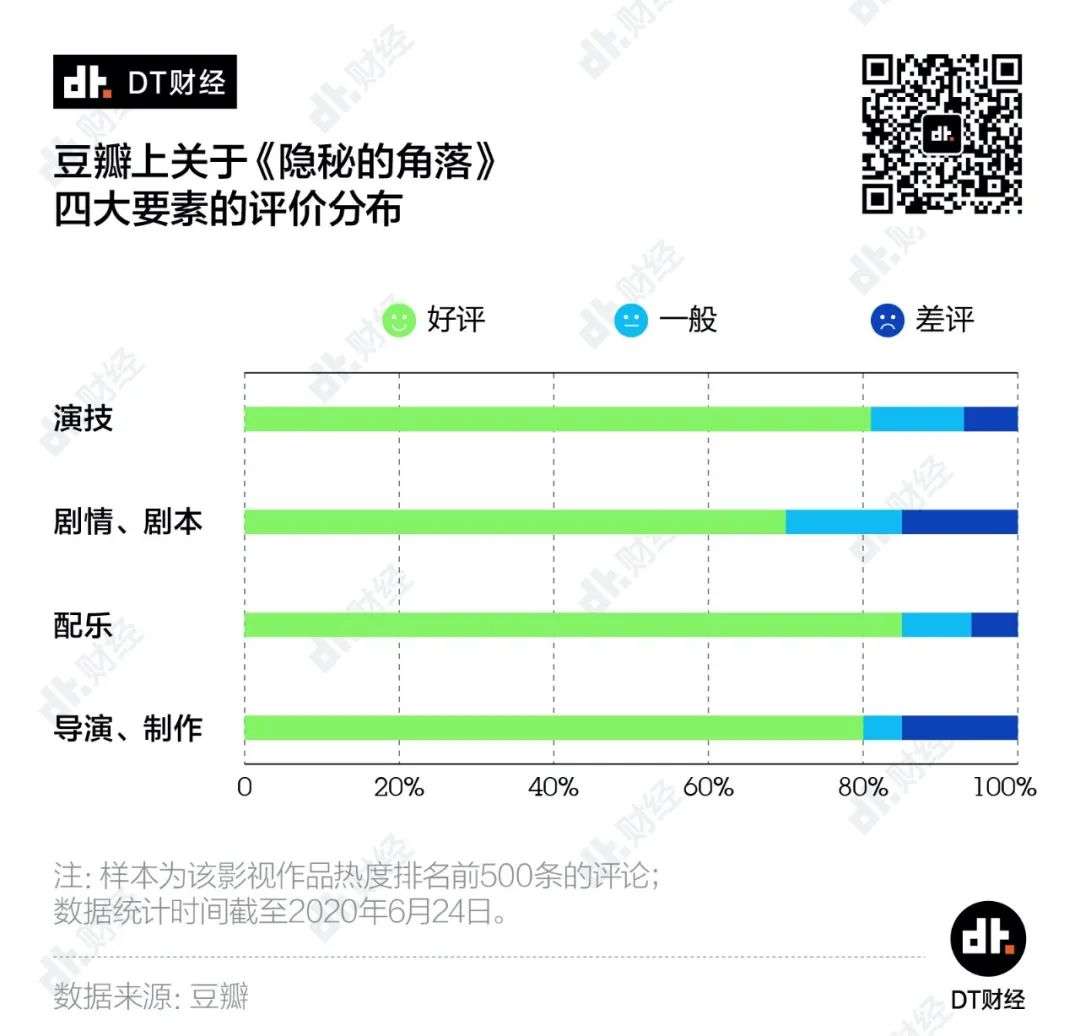 不过,在演技、配乐、导演/制作纷纷获得好评的同时,比较让人意外的是,豆瓣网友似乎对这部剧的剧情不够买账,只有70%的网友认为《隐秘的角落》的剧情值得他们的好评。