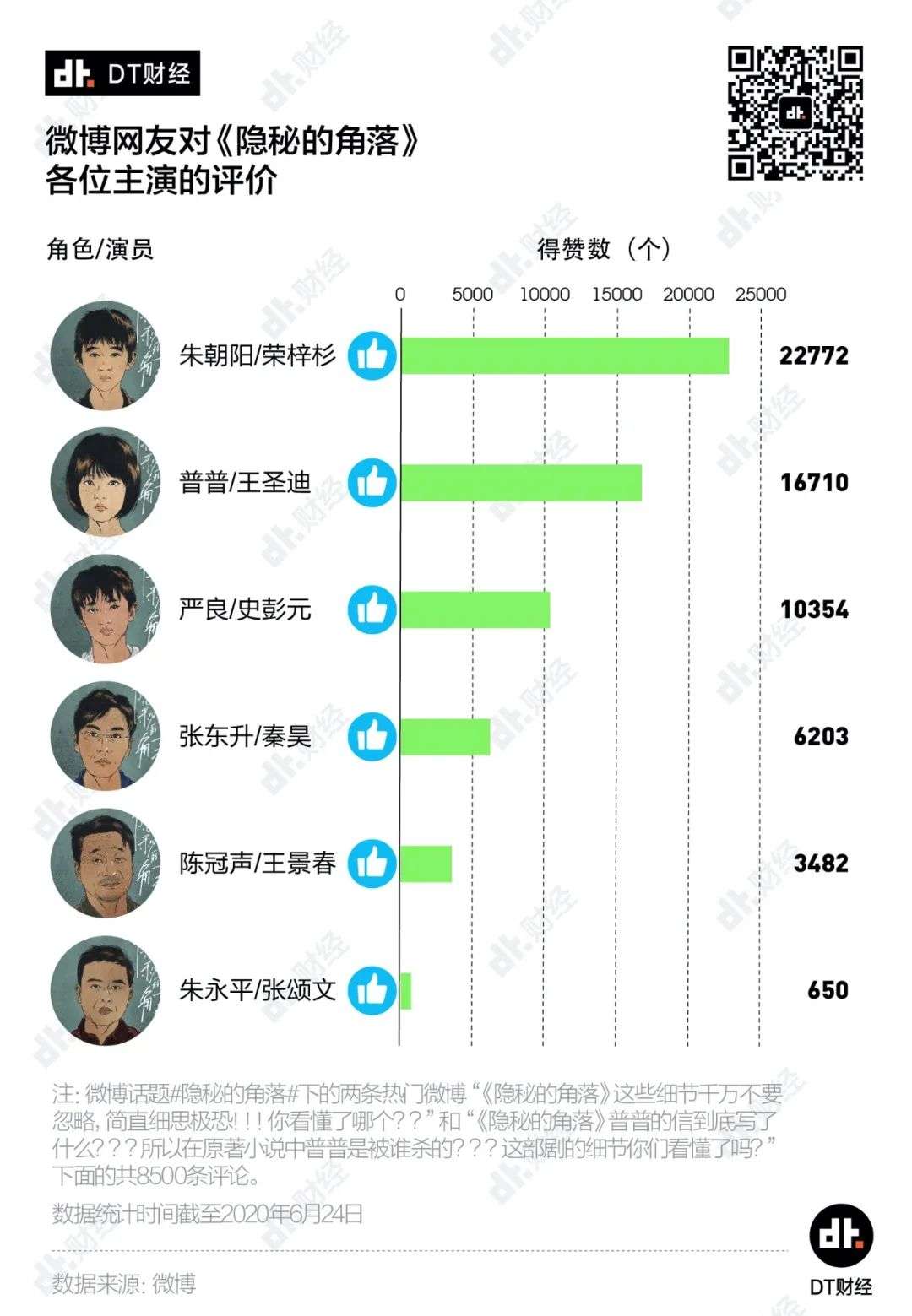 DT君注意到,《隐秘的角落》热度曲线在6月17日、20日和23日这几天都明显地上了个台阶。也就是说,这三个时间点是助推该剧出圈的关键时刻。