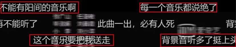 低沉重音形成压抑感,而嘈杂诡异的人声音调陡然升高,透着阴郁、绝望、不安,配合凌厉的剪辑风格,强化了悬疑色彩和诡谲的氛围。
