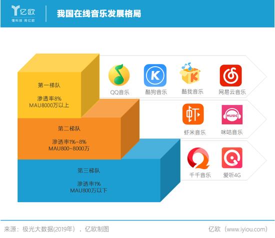 酷狗音乐、QQ音乐、酷我音乐、虾米音乐、天天动听等更多玩家看到机会并入场,在线音乐市场迎来大爆发,进入到群雄混战的阶段。