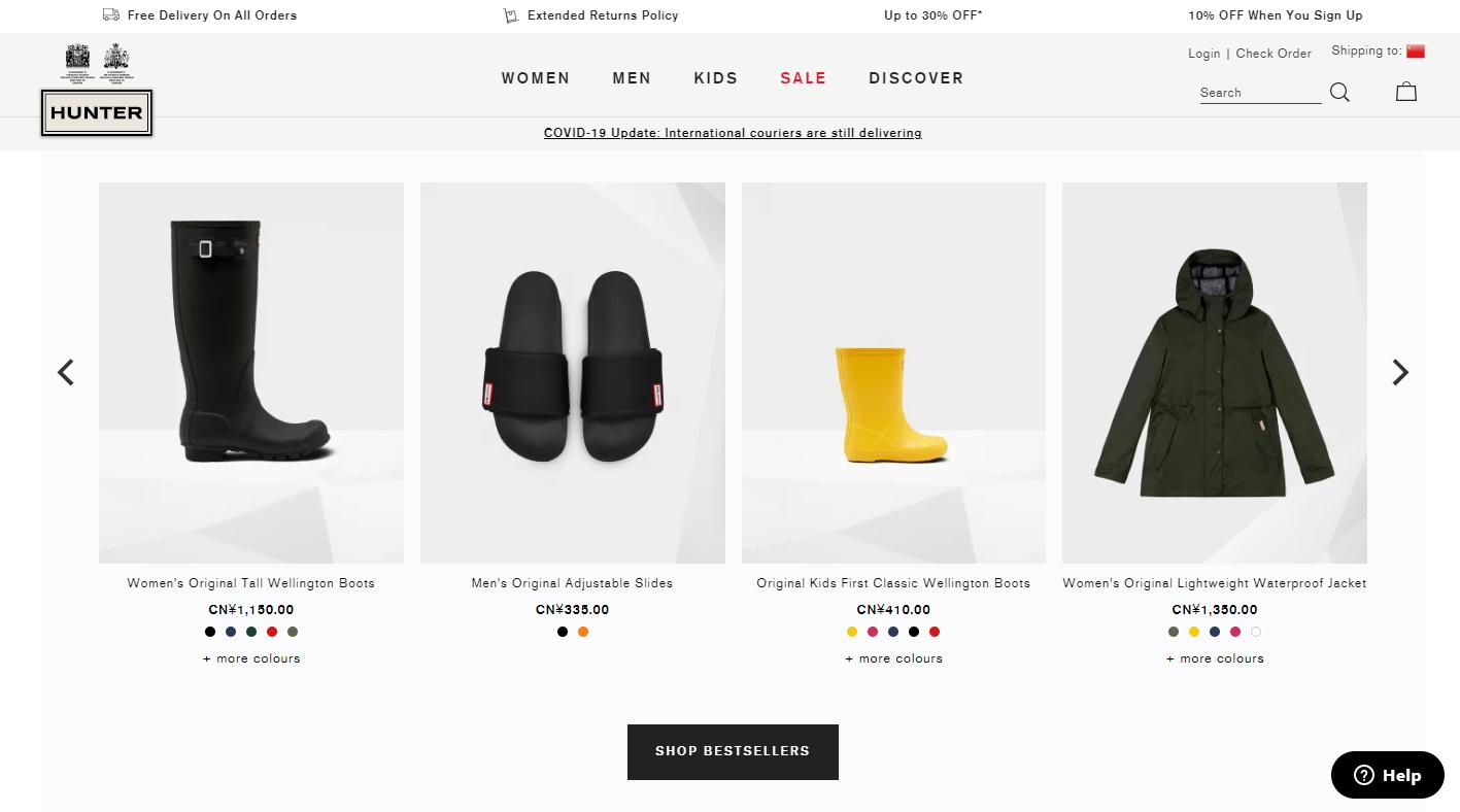 Hunter Boots 已经发展成一个多渠道并进和跨地区经营的品牌,Hunter Boots 的线上销售额占整体销售额的30%。