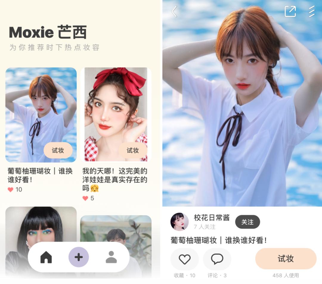 而芒西的主要功能就是仿妆,用户可以通过直接拍摄自己的相貌,或者上传自己的相貌图片进行仿妆功能上的操作,首先系统会自动匹配出用户的同款妆容,如果用户不满意,用户还可以尝试其他不同风格妆容,系统会运用AI技术进行细微调整,达到最逼真的试妆效果。