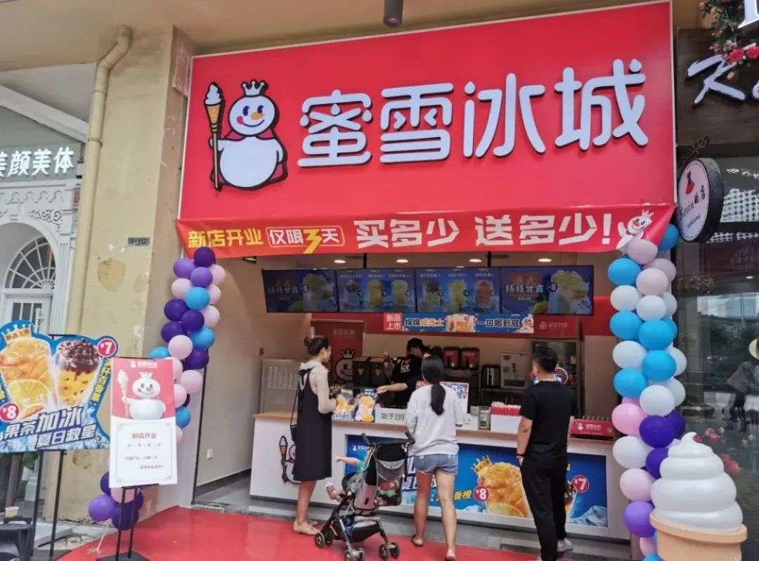 前几天路过一家蜜雪冰城,甚至开始做起了“店门外”的生意。