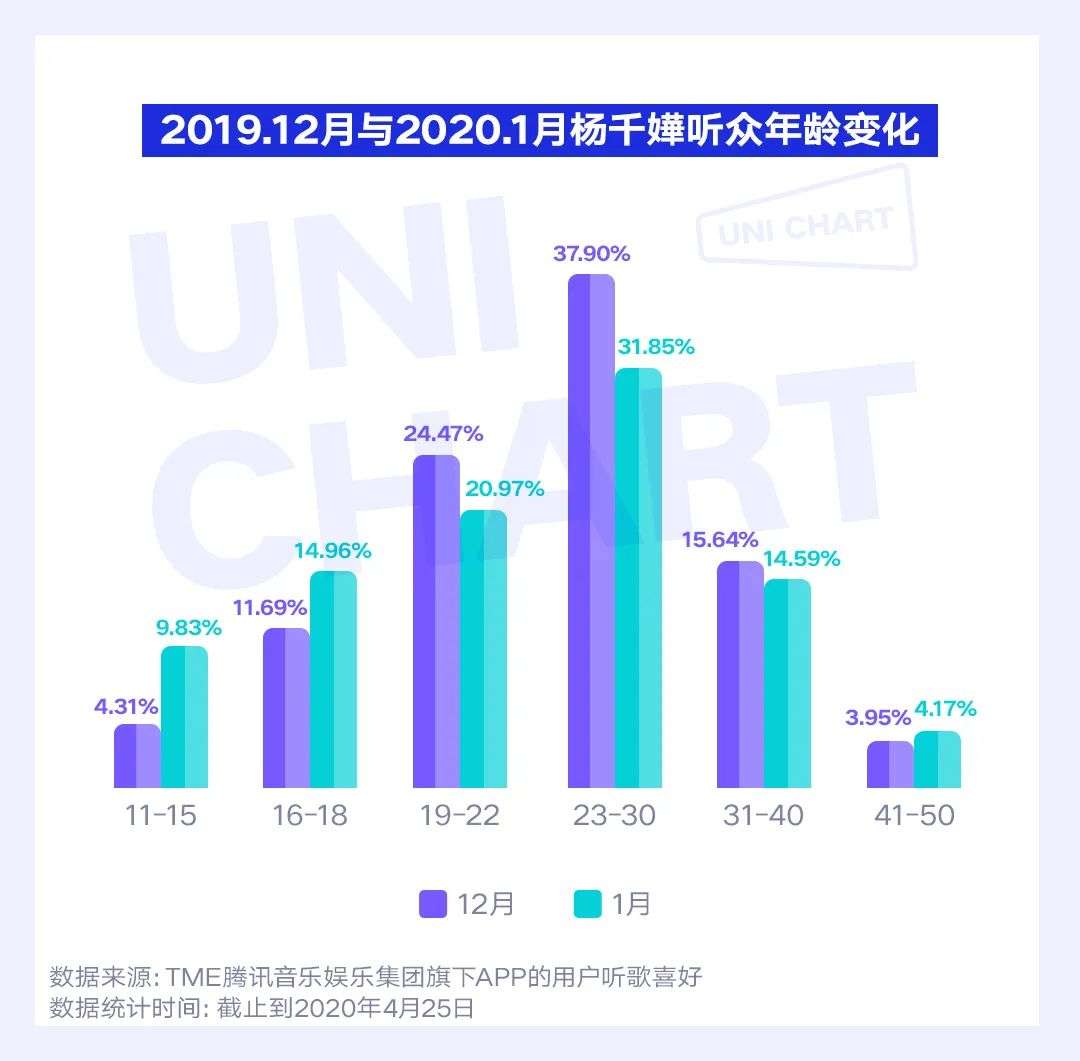 从杨千嬅2019年12月到2020年1月的收听用户量上能看出,在1月一个月的时间里,杨千嬅的总用户收听量较12月增长了2.33倍,二月也同样维持了这一高用户收听趋势,老歌翻红对于歌手的拉新作用不言而喻。