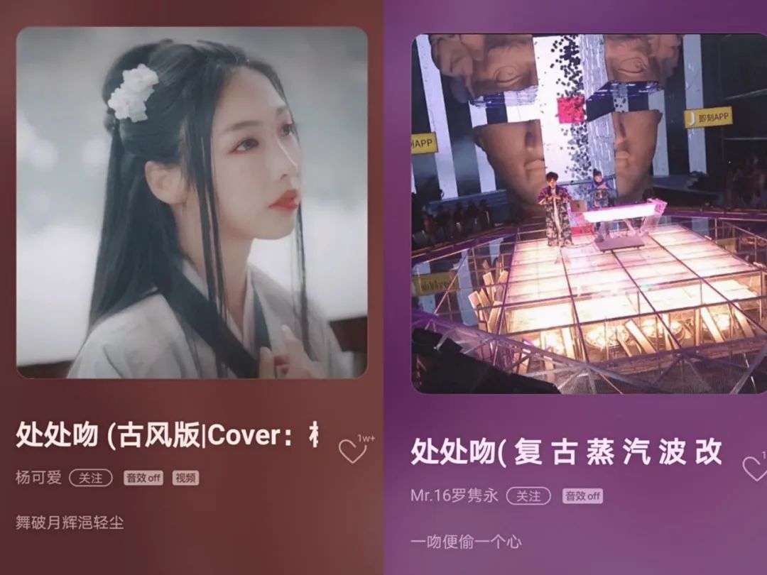 在杨千嬅的《处处吻》原曲火热之后,进而诞生了男生版、复古蒸汽波版,王者荣耀版,吃鸡版,古风版,洛天依版等诸多翻唱版本,一方面帮助了歌曲打通了不同圈层的影响力,另一方面也帮助延续了原曲热度的持久性。