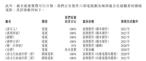 截至最后实际可行日期,华夏视听正在制作6部电视剧及2部网络电影。