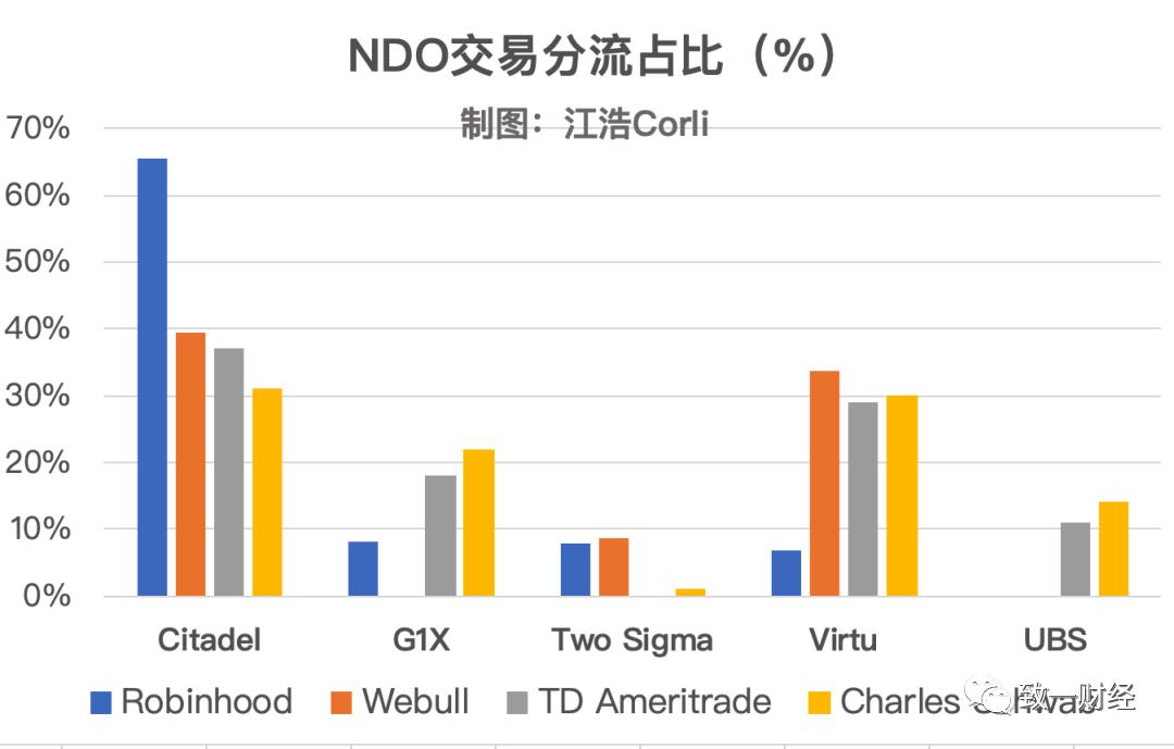 Robinhood是一个特例,其他经纪商都比较均衡,只有它把接近70%的订单都交给了Citadel,我推测原因有两个: