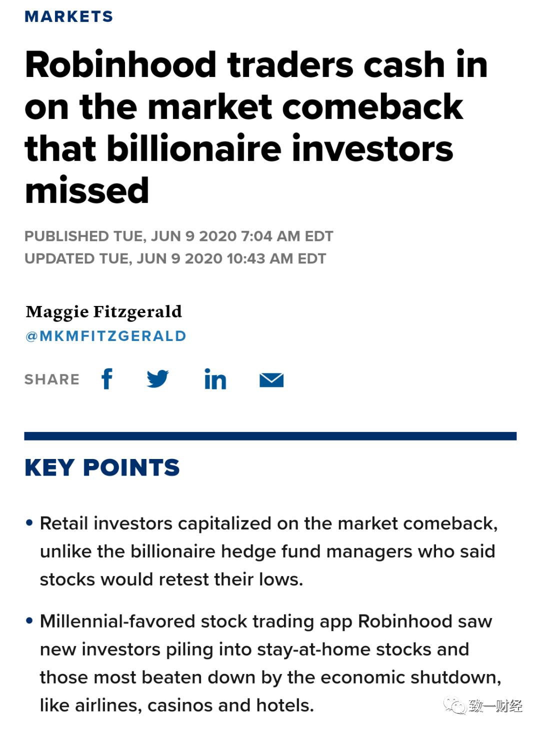 Robinhood创始人说年轻用户纷纷买入疫情影响最深的几个行业,比如航空股、视频会议、流媒体、生物制药,而这些公司都是疫情来袭之时机构们疯狂逃离的对象。