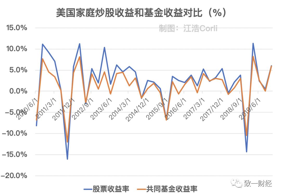 对于第一点,我得到一个自己难以相信的分析结果:美国人自己炒比基金经理收益高。