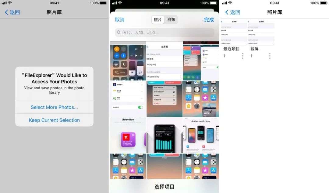 iOS 14 不仅在提醒方面下足了功夫,它还将更多隐私权限的管理能力交给了用户。在相册权限上,iOS 14 新增了「选中的照片」选项。用户可以在 App 请求调用相册时选择部分照片让 App 读取。从 App 的视角来看,你的相册里就只有这几张照片,App 无法得知其它照片的存在。