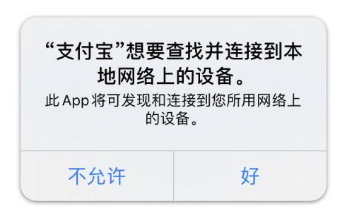 当你首次在 iOS 14 下打开某些允许联网的应用时,你还可能会收到一个弹窗提醒你当前 App 想要查找并连接本地网络上的设备。如果你收到了这样的弹窗,就意味着当前 App 正准备读取本地局域网其它设备的信息。这也是 iOS 14 在隐私管理上的新功能,对于一些显然不需要连接至其它设备的 App,你可以直接关掉这一权限。