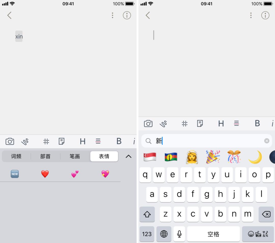 左:普通输入法,右:Emoji 搜索