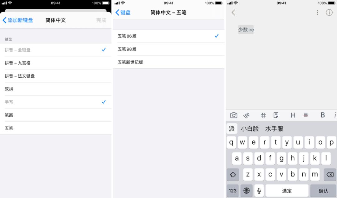 iOS 14 还为中文用户带来了五笔输入法,如果你平时习惯使用五笔输入的话,现在你终于可以抛弃第三方输入法了。系统自带的五笔输入法支持 86、98 和新世纪三种版本。