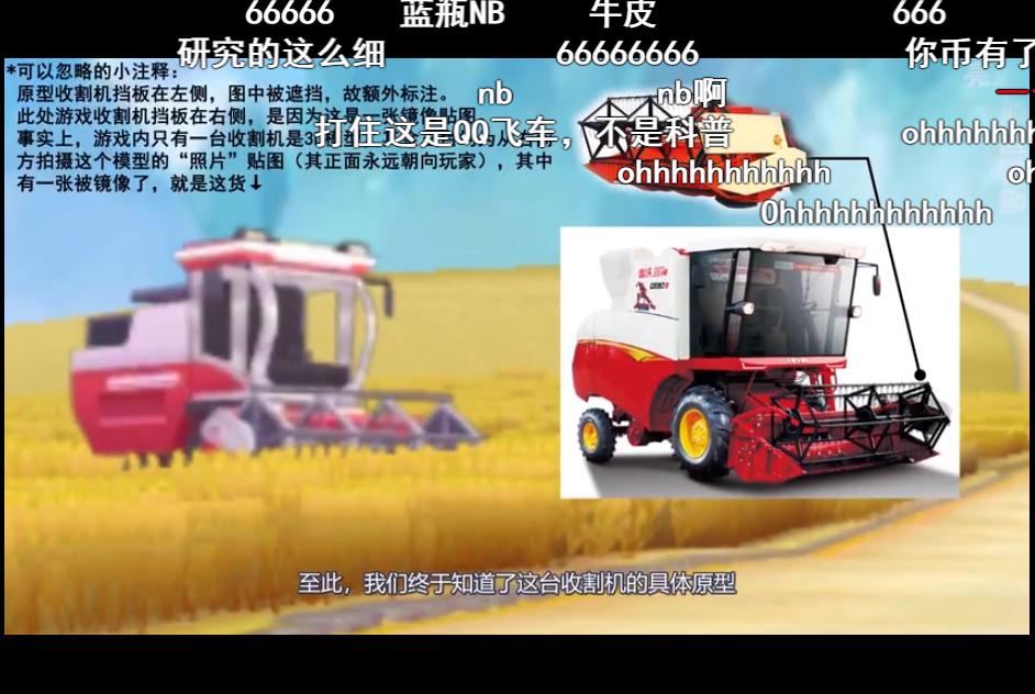 赛道起点旁的一辆农业无人收割机,一开始就成功难住了这位UP主。通过不断查看文献,比对以及关键词调整,这位UP主才在同年6月央视新闻的一则报道中,找到了这辆农业无人收割机的原型。