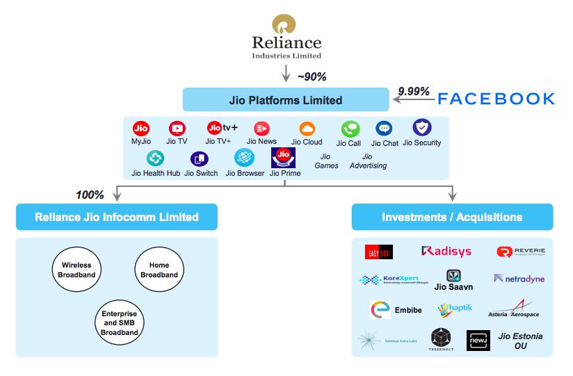 近来 Jio 也成了印度最受瞩目的投资标的。今年四月以来,一直有 Jio 融资的消息传出。几笔融资交易之后,Jio 将总共让出接近 25% 的股权,从全球十家机构中获得约合 150 亿美元,Jio 估值也飙升至 650 亿美元。这些融资不仅能够缓解母公司信实工业集团(Reliance Industries)的债务问题(集团掌门人穆克什·安巴尼此前向投资者承诺 2021 年 3 月之前将信实工业净债务削减至零),也能为其互联网等业务提供有效补充。