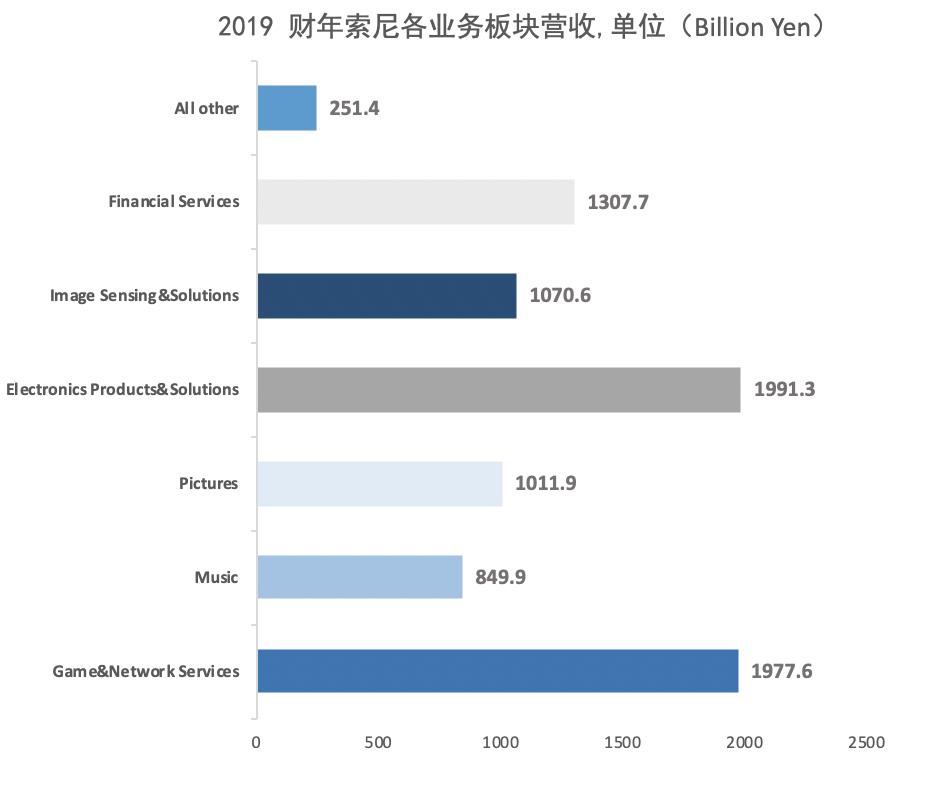 从财报来看,经过多轮整合,索尼是一个主要拥有六大业务板块的“全家桶”,分别是游戏和网络服务、音乐、影视、电子产品和解决方案、图像传感器和金融服务等。