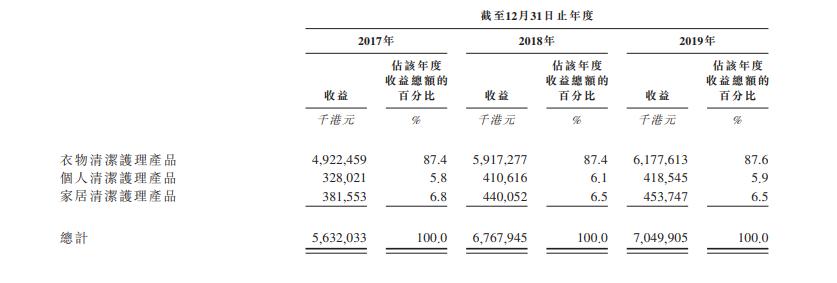 蓝月亮收入来源 来源:招股书