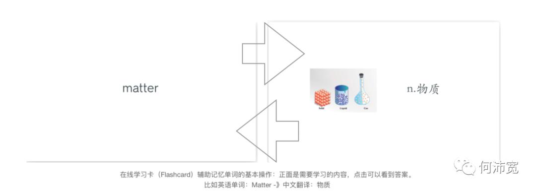 以上拼音学习卡片记忆方式,本质是通过一种可以辅助记忆的背景A,完成B的学习,即音标/语音到文本。现在在线化的卡片学习工具,底层与此是相通的,从辅助记忆的卡片A到卡片B。