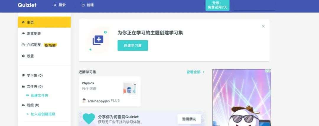 Andrew Sutherland认为“ Quizlet最大的机会是成为每个人学习的平台,而唯一做成的方法是作为一个免费的产品。而且Quizlet的运营成本很低,为什么要为此收费很多呢?” 因此在早期Quizlet主要盈利模式是售卖广告位,学生端基础功能所有人都可以免费使用。