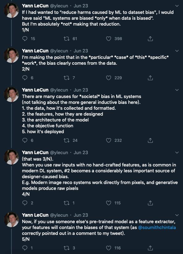 之后,Yann LeCun 又在多条推文来解释自己关于偏见的立场,但仿佛已经没有用了。