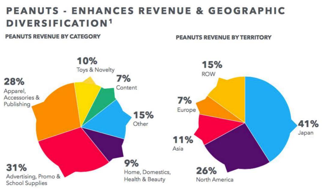 索尼收购Peanuts Holdings股份时,DHX Media(现更名为wildbrain)首席执行官Michael Donovan表示,日本是史努比最重要的市场,自从索尼成为日本总代理以后,史努比“在日本市场的销售额7年增长超200%”。