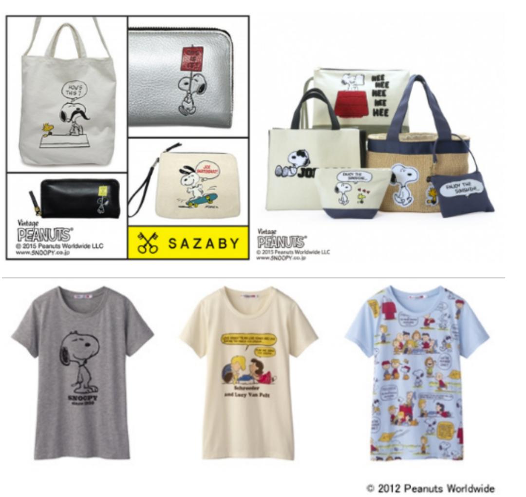 鞋服配饰方面,包品牌SAZABY和cache cache与史努比出了联名款,优衣库UT系列推出了史努比款式,日本最可爱的家居服品牌之一gelato pique与史努比进行了首次合作,日本职业棒球的中央联盟和太平洋联盟也与史努比进行合作,以促进制服、T恤的销售。