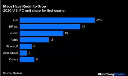 苹果是全球第四大个人电脑供应商,产量仅落后于联想、惠普、戴尔,有超过1亿Mac电脑的活跃用户。