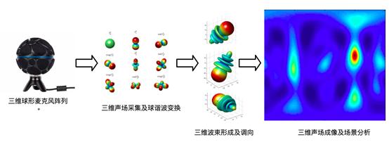 Sugr自主研发了独有的创新三维球形麦克风阵列、三维球形谐波计算、三维球形波束成形和三维声场建模技术。这是一种基于三维阵列波束形成器及高阶三维环绕声场编码分析取得全局最优解的降噪方案。该优化设计方法将业内现有的各种相关设计方法纳入一个统一的框架,具有更大的灵活性,且可以克服其他方法视角有限、定位精度不足、系统鲁棒性薄弱、不易量产,无法判定讲话人的缺点。