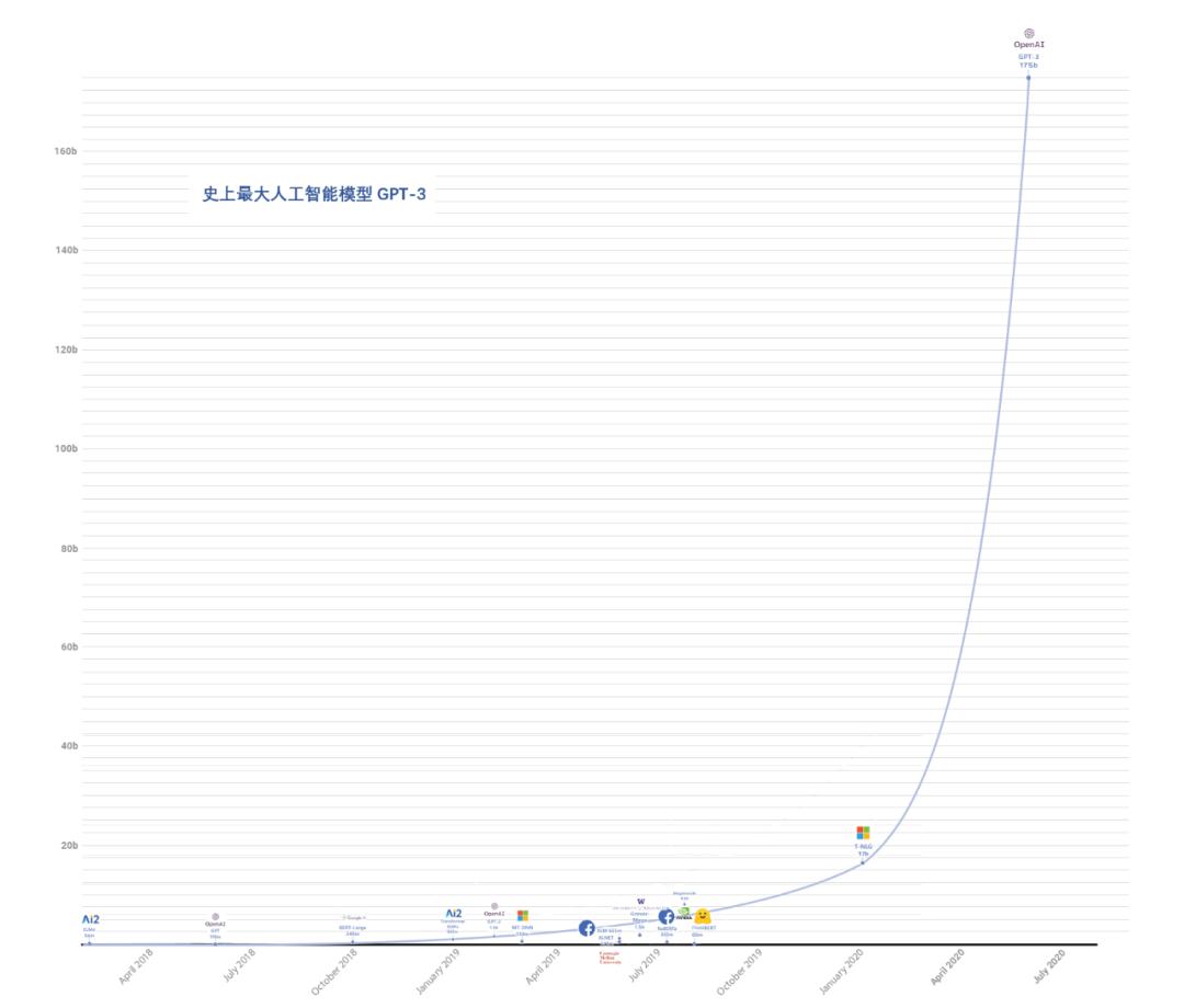2020年6月,绿巨人GPT-3,有1750亿个参数。