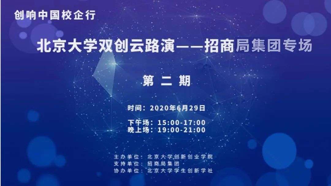 2020年6月29日,“创响中国校企行”北京大学双创云路演-招商局集团专场顺利举办。本次专场路演活动由北京大学创新创业学院主办,北京大学学生创新学社协办,招商启航作为导师团队在线支持,为来自北大的毕业生及校友创新创业团队下午和晚上两场主题路演进行了点评和辅导。6月29日下午场为教育专场,“树形途自然教育”“启青”“学圈儿”等多个教育项目参与路演,招商启航投资团队受邀作为导师,为项目做一对一的点评和辅导;晚上场为硬科技专场,创新领域涉及芯片、人工智能、新材料等方面,“炎黄国芯”“导官墨镜”“波普AI节能”等多个项目参与路演,招商启航投资团队受邀作为导师,分别从技术、产业、投资角度为项目做了点评和辅导,参与北京大学云双创路演活动的创新团队表示,通过与天使投资人面对面、一对一交流和辅导,对于创新思路和实践结合的指引明确,受益匪浅。