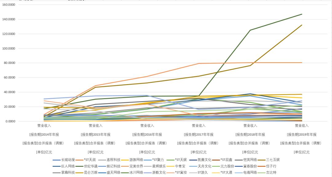 2014年-2019年A股游戏公司营收走势