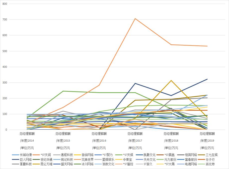 2014年-2019年A股游戏公司总经理薪酬