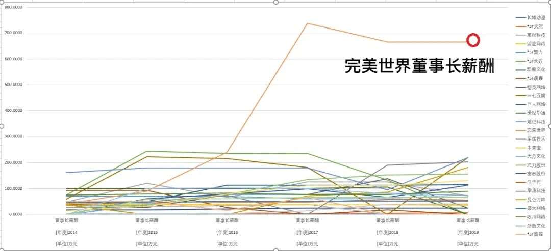 2016年,完美世界董事长的年薪位列A股游戏公司董事长年薪首位,此后几年也一直蝉联首位。