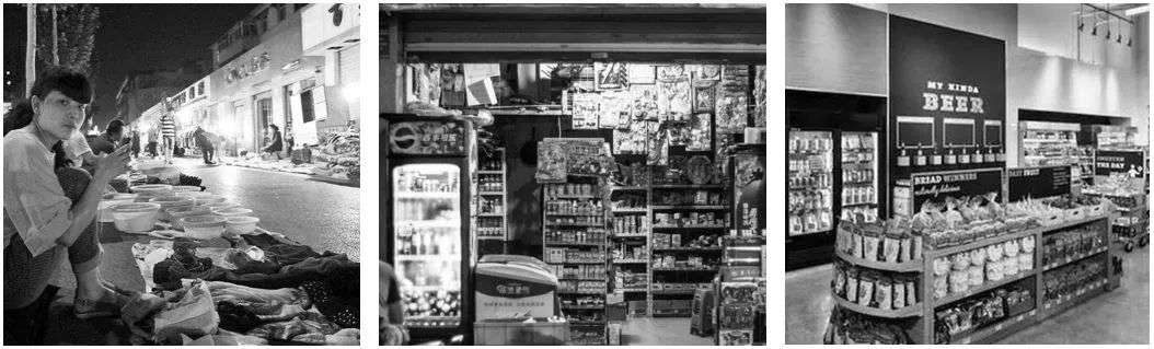 业态面积也是,我们拿Grocery Store来看,从夫妻老婆店到超市,再到便利店、食品超市,又到折扣超市,业态面积由小到大,再到小,再到大。