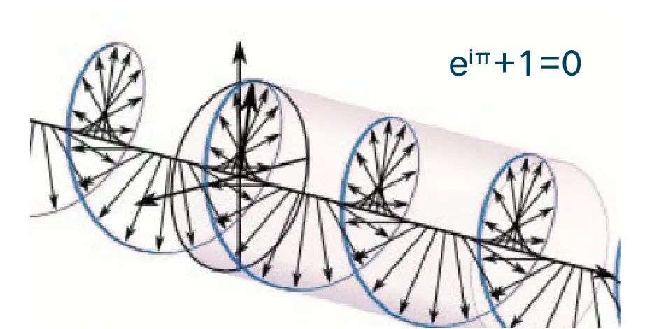不得不感叹,这个公式集合了自然常数e、虚数单位i、圆周率π、自然数0和1,和两个简单的运算符号+和=,却对世上非常多举足轻重的理论意义非常。我们把π的位置改成变量Z——数学意义上,e代表连续,i代表旋转,可以看到这个函数就是一个围着Z轴循环前进的螺旋。这个螺旋既包含了不变的单向演进,又包含了循环的周期变化。