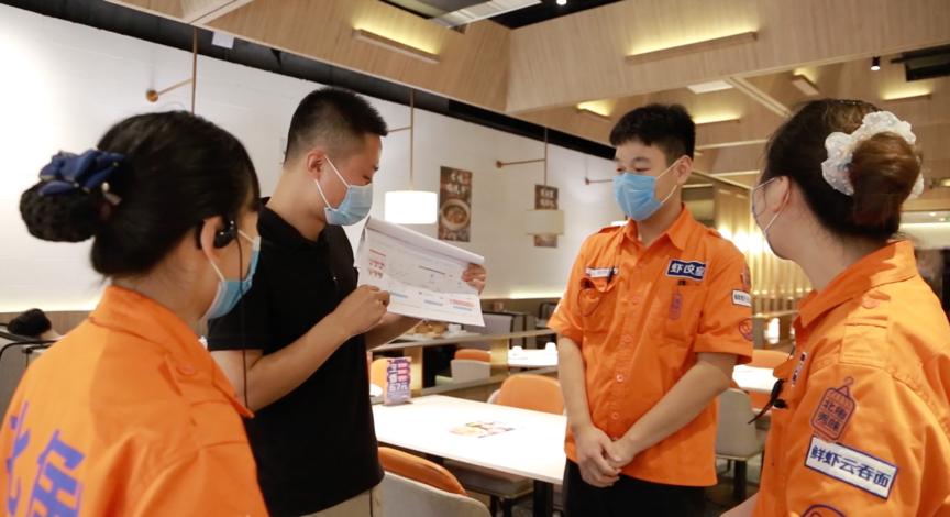 “小店规划师”朱碧武正在和小店员工介绍数字化转型后好处