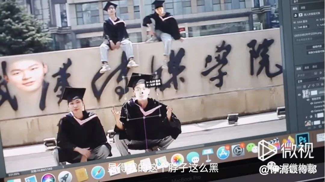 同学们纷纷开始找毕业照上的自己,有挑剔P得不好的、有嫌弃郗星宇“身材”不够壮的、也有人说“大学四年,终于在毕业照上瘦了”。