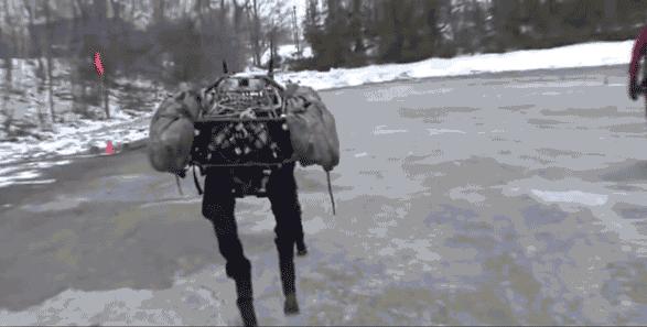 12年他们又推出了LS3,比大狗更大更能负重。LS3高约1.7米,可以背负181公斤自由行走奔跑,背起两个壮汉可以说轻而易举。