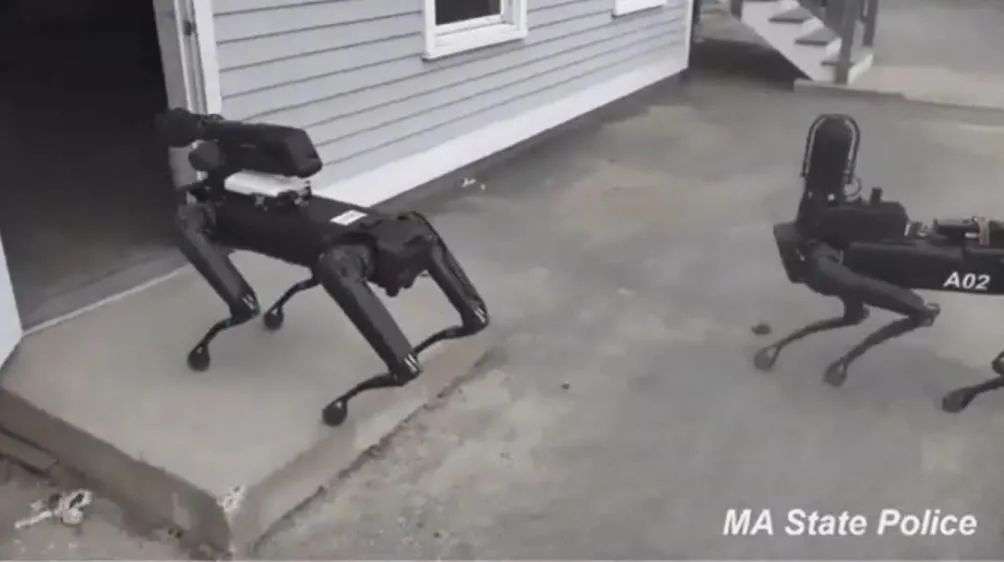Spot在警察的控制下开门,图片来源:MA StatePolice