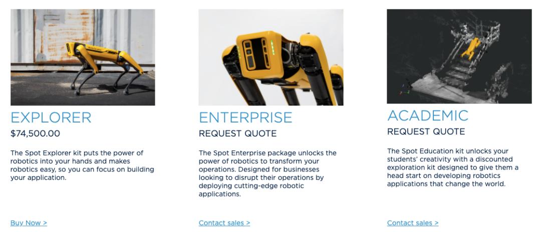 机器狗Spot的发售是他们在产品商业化上的一个里程碑式突破。这是第一次企业可以直接购买公司的产品,也是第一个在线销售的产品。