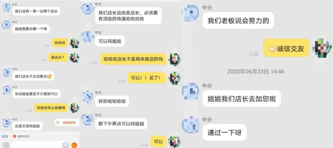 点单店长时,和店铺客服的对话来源 / 淘宝截图