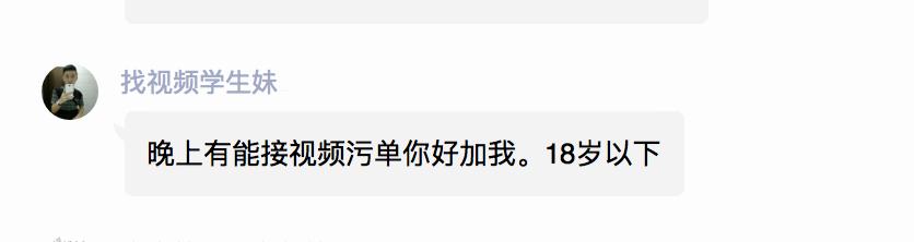 “晚上有能接视频污单的,请加我,18岁以下。”