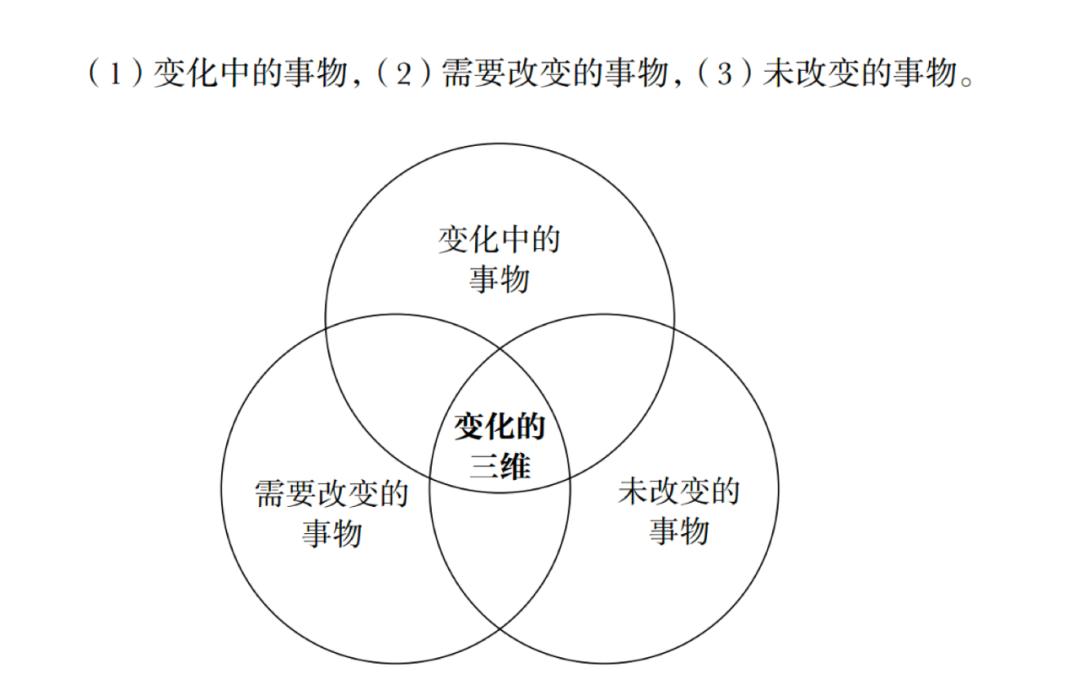 变化拥有多个维度,但有三个方面是最重要的——变化中的事物;需要改变的事物;未改变的事物。