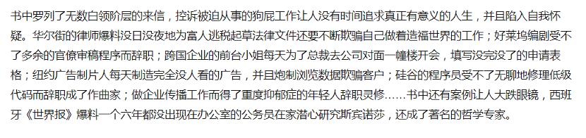 伦敦政经的人类学家David Graeber曾经写过一本书《Bullshit Jobs》指出,研究发现社会中毫无意义,甚至是有害的工作占到了所有工作一半以上,而且还在不断膨胀。