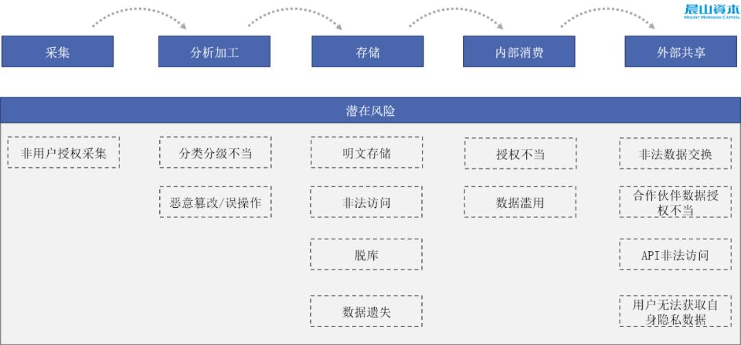 例如,在数据采集过程中没有得到用户授权的非法数据采集,采集后没有按照特定的标准进行脱敏、加密的处理,没有严格按照数据的分类分级标准进行分类和存储,用户对自身数据进行请求和操作时企业无法给出相应的数据反馈。