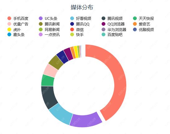从近三个月的投放渠道分布来看,《乱世王者》主要买量平台为手机百度(占比41.78%)、UC头条(占比13.34%)、好看视频(占比10.25%)、腾讯系渠道占比26.98%(腾讯视频+天天快报+腾讯新闻+腾讯QQ+优量广告),几乎看不到字节系渠道。