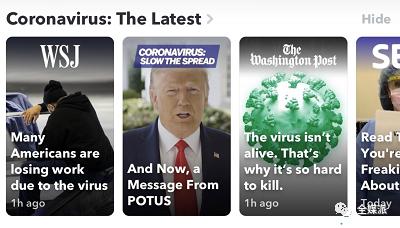 日前,Snapchat在“发现”栏目推出了一个名为“新型冠状病毒:最新报道”(Coronavirus: The Latest)的专区,用以将高质量的新闻报道和有关疫情的信息放在“发现”的最顶端。