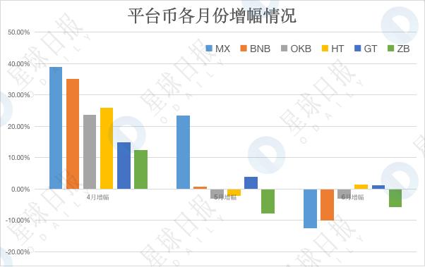 另外,六家平台币在不同的月份表现各异,如下所示: